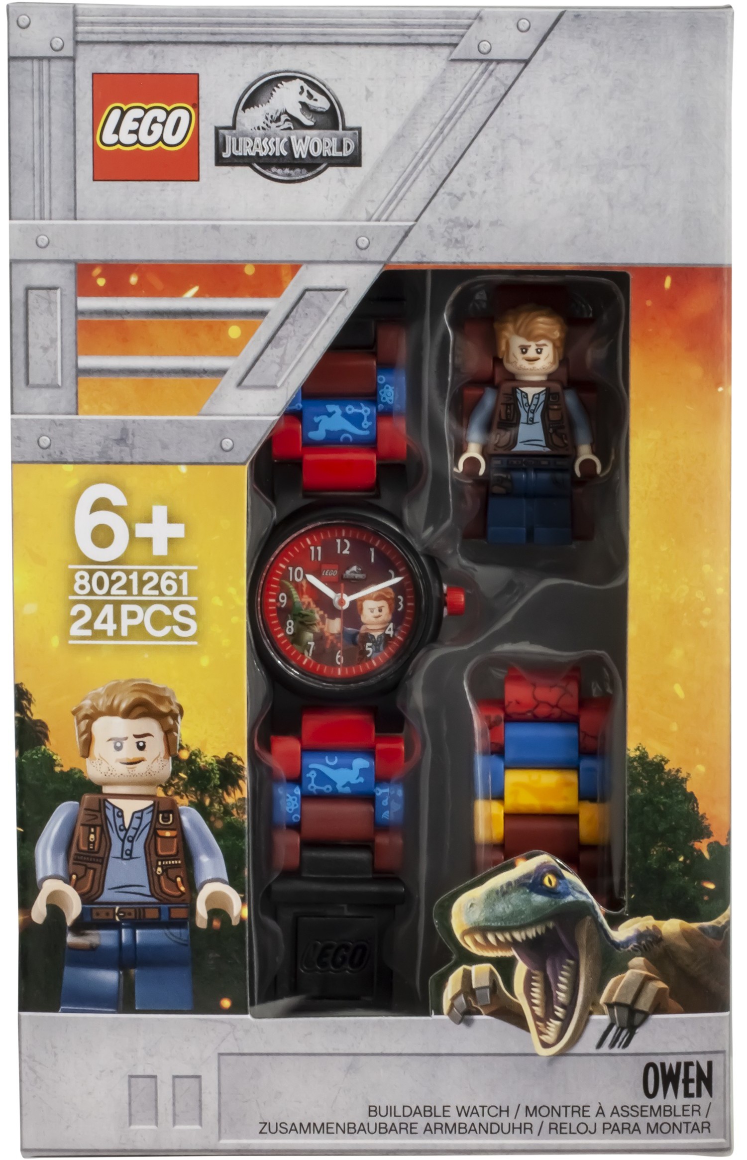 Owen Grady is a dinosaur researcher who works in Jurassic World. Owen believes he has a relationship with the dinosaurs based on mutual respect. The ex-military member trains and studies a very special group of Velociraptors. The LEGO Jurassic World: Fallen Kingdom Owen Minifigure Link Buildable Watch comes complete with interchangeable, multicoloured watch links for you to build and design.
