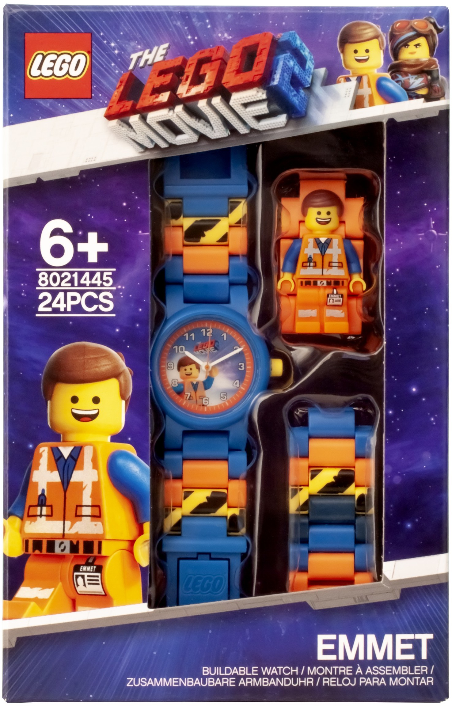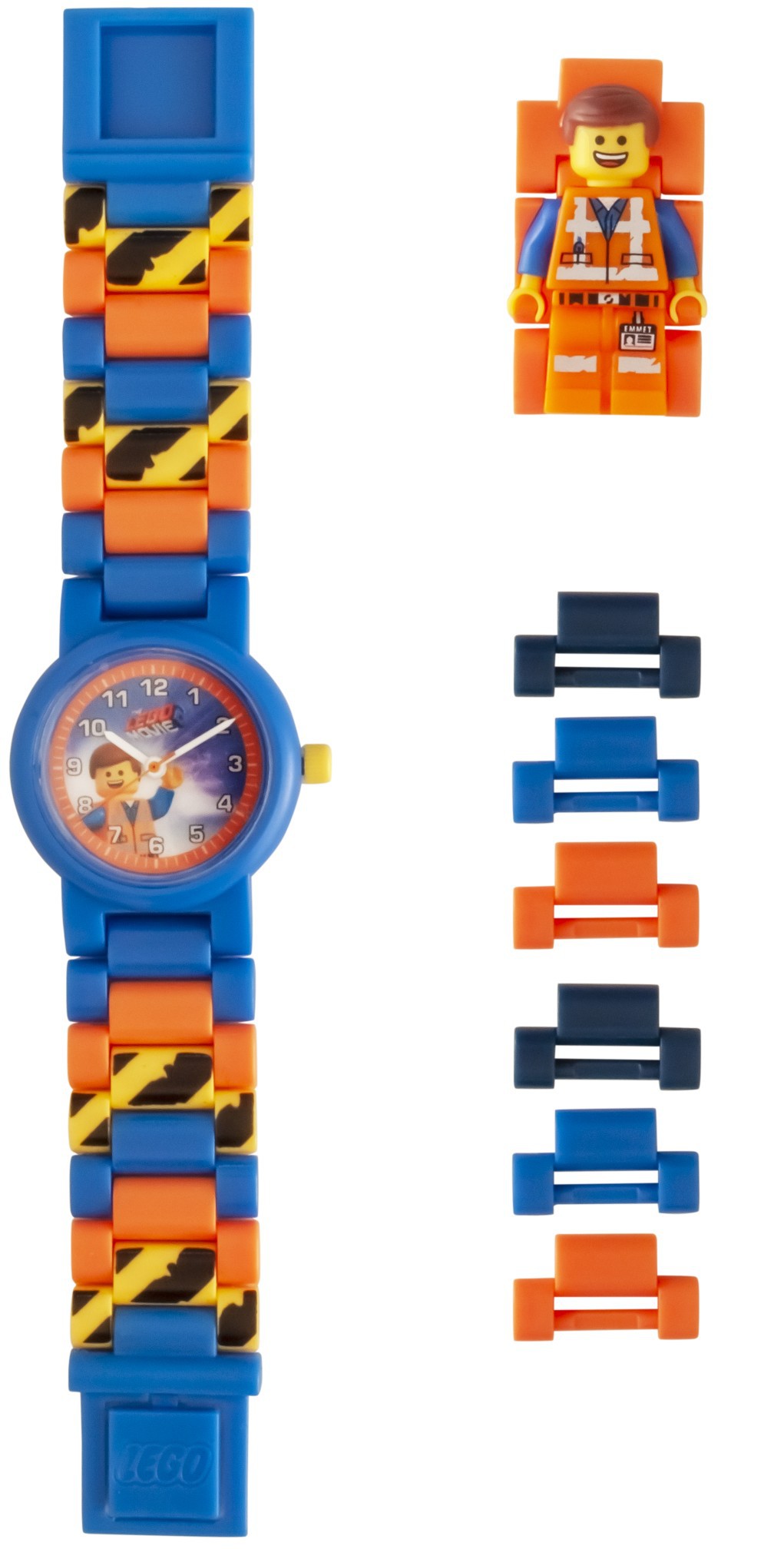 With your LEGO Movie 2 Emmet analogue watch you can fly into space with an Emmet minifigure link built into your watch strap. With multi-coloured interchangeable links and plenty of design possibilities you can build a unique watch to fit all wrist sizes.