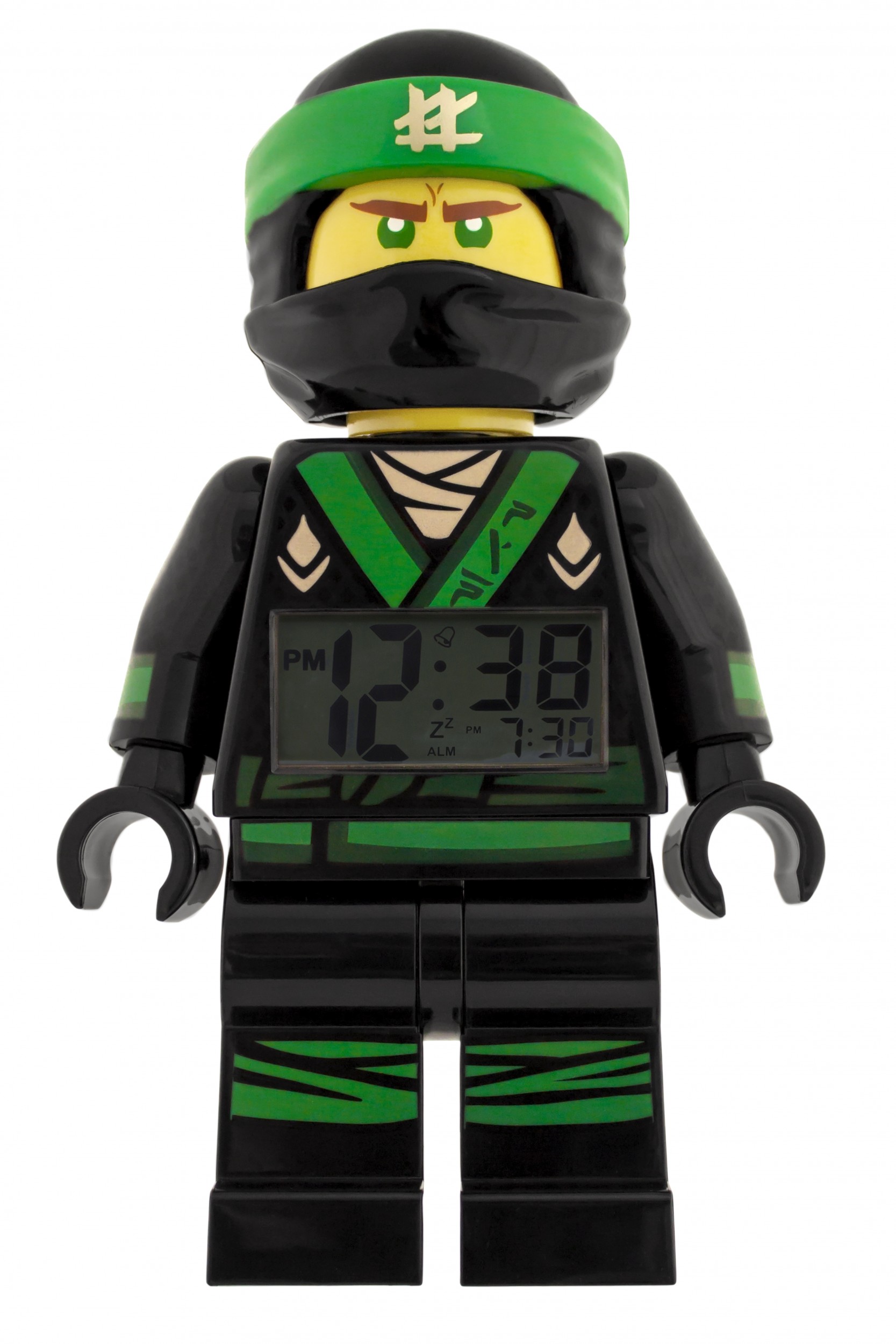 Standing just over 24 cm, the jumbo-sized Lloyd Minifigure light up alarm clock will watch over you and protect the far-away land of Ninjago from evil warlord Garmadon's takeover. Once Lloyd realised his destiny as the Green Ninja, the bratty young boy began to change his ways and help the Ninja. Lloyd once sought to follow in his evil father's footsteps but later learned he would need to defeat the Dark Lord to protect the fate of Ninjago. Lloyd has served heroically alongside the Ninja team and certainly takes no prisoners.