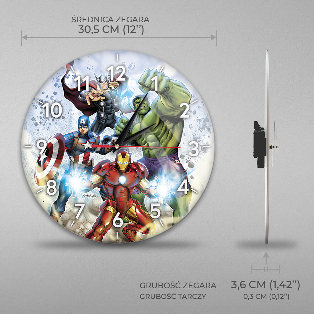 Marvel Avengers väggklocka med Thor, Hulken, Iron-Man och Captain America.