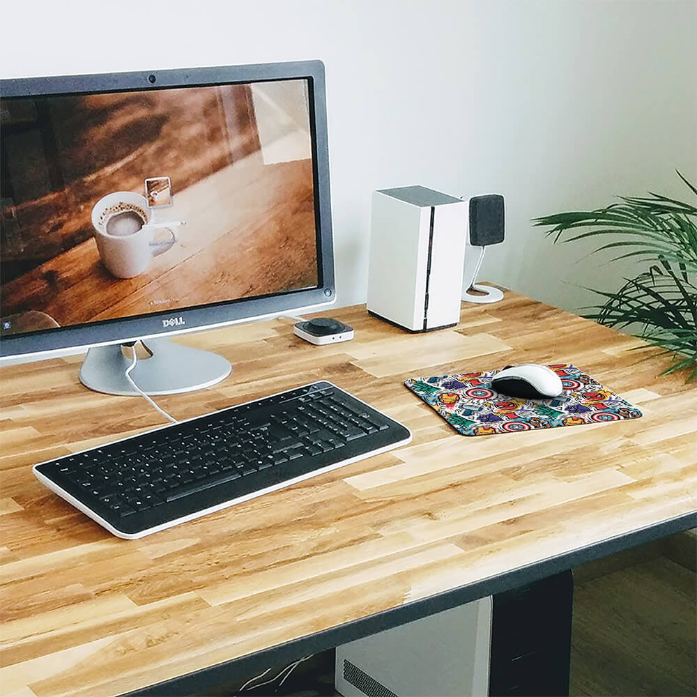 - Trycket är inbäddat i musmattan för att göra trycket slitstarkt så att det inte slits ut och blir fult.