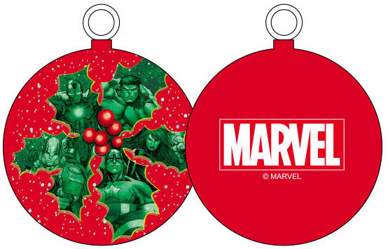 Julgranskula med Marvel-karaktärer.