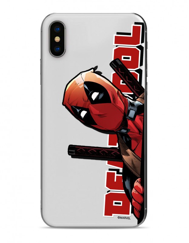 Deadpool mobilskal i mjuk stötdämpande plast. Bakgrunden är genomskinlig.