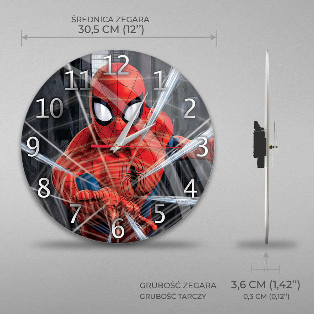 - Clock parameters: 30,5 cm diameter, 0,3 cm thickness (with 3,6 cm mechanism)