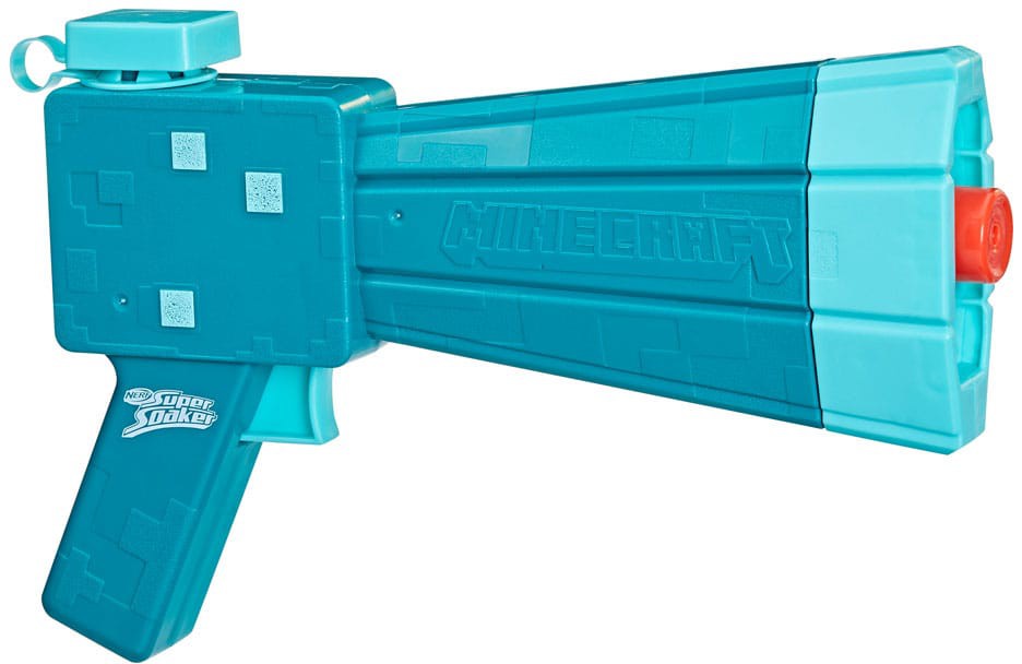 The Nerf Super Soaker Minecraft Glow Squid water blaster takes its inspiration from the aquatic squid mob in Minecraft. Dive into water-blasting excitement with this Nerf Super Soaker Minecraft water toy in high-energy outdoor games. Kids can play outside for active backyard water fun as they soak opponents with streams of water. Easy to use, so you'll be drenching friends and family in no time! Open the cap, fill the tank with water, close the cap, then press the button to unleash a streaming blast of water at anyone in range. This cool toy for boys and girls is an awesome gift for Minecraft fans and a great addition to Nerf blaster collections. Eyewear recommended (not included).