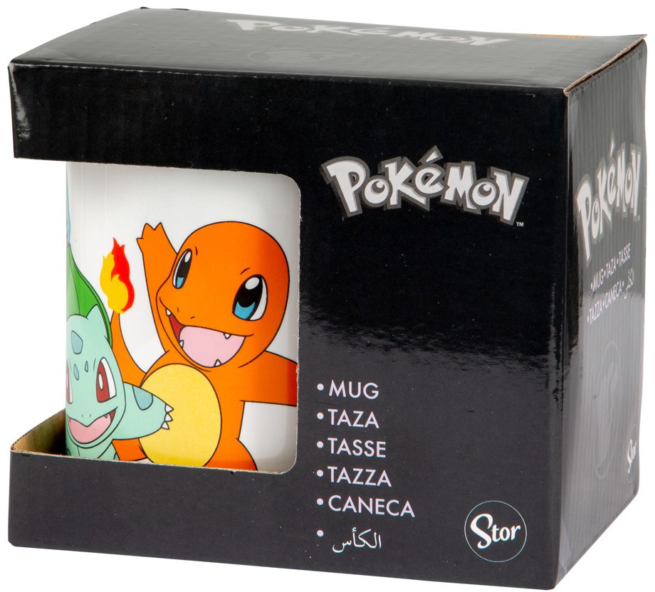 Pokémon mugg med Charmander, Squirtle, Bulbasaur och Pikachu.