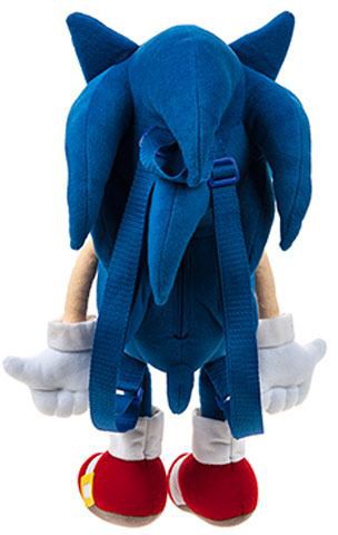 Sonic ryggsäck i form av ett Sonic gosedjur.