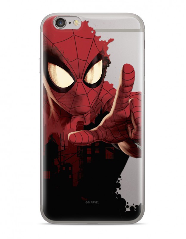 Spider-Man mobilskal i mjuk plast. Bakgrunden är genomskinlig.