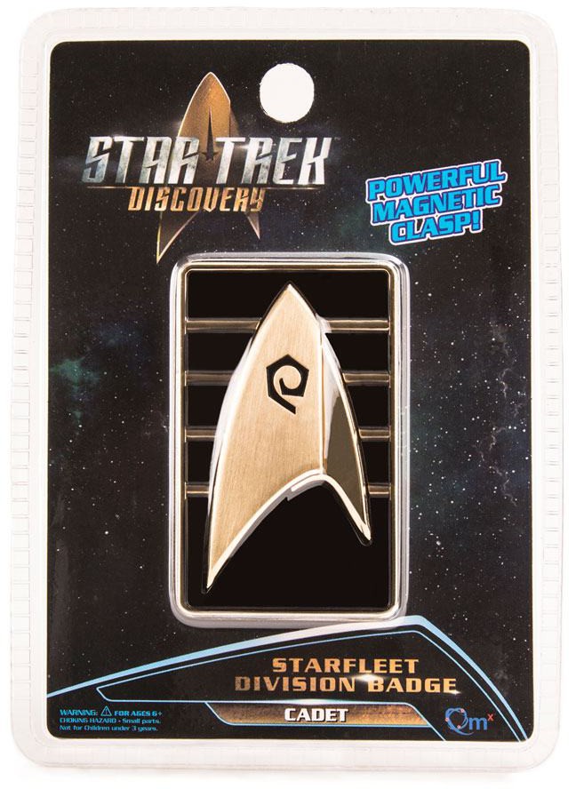 Star Trek: Discovery Cadet Badge - som bärs av Cadet Sylvia Tilly - har ett bronsdelta med den stiliserade Operations-spiralen på en svart rektangel. De fyra guldränderna på märkets bakgrund indikerar att Cadet Tilly är i sitt fjärde år av utbildning för att bli Starfleet officer.