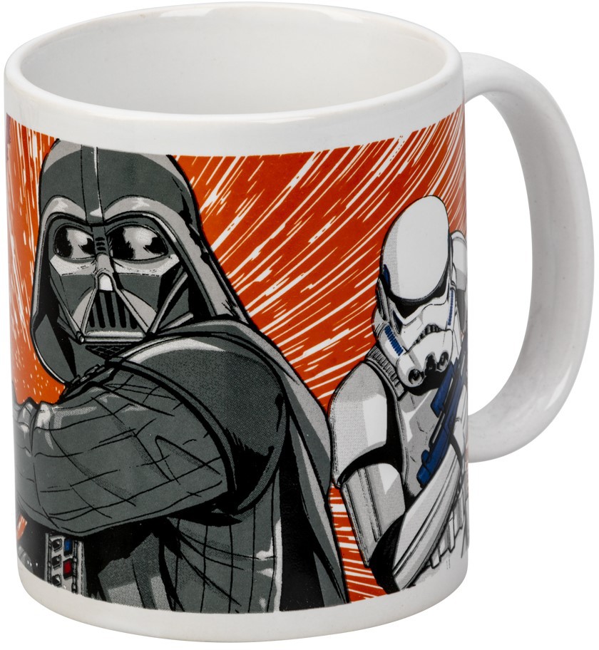 Star Wars mugg i tecknad stil med Darth Vader och en Stormtrooper.