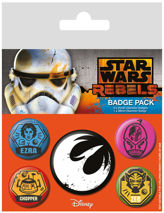 Fem stycken Star Wars Rebel pins med figurer från TV-serien.