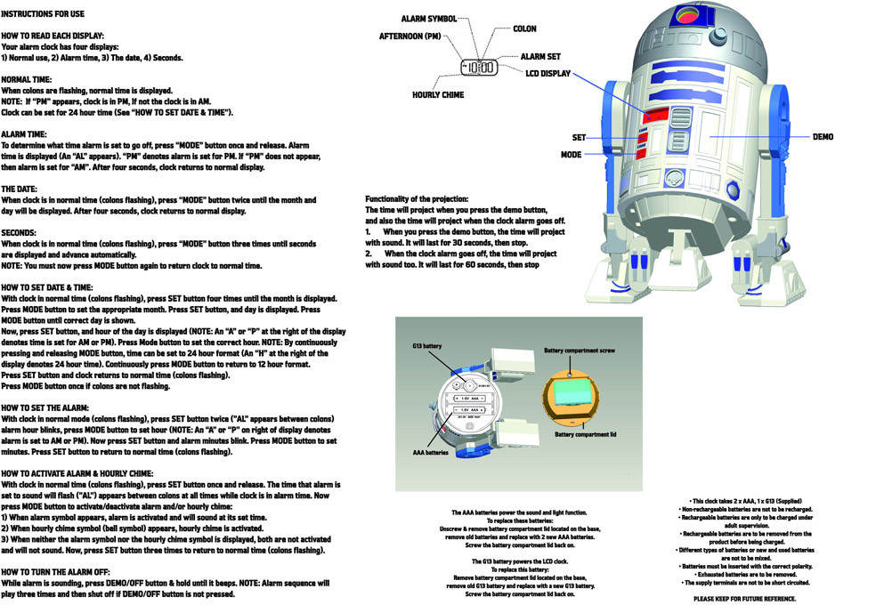 Var vänlig ställ din fråga om produkten "Star Wars - R2-D2 Projecting Alarm Clock with Sound " nedan, så svarar vi så snart som möjligt!