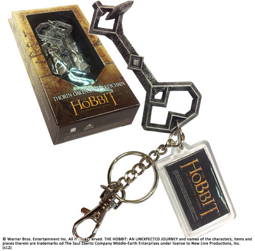 Thorin Oakenshield key chain. The meticulous reproduction of the magical key to Mt. Erebor measures 17 cm (including chain) also features a fob that bears the map entrusted to Bilbo in his journey there and back again!