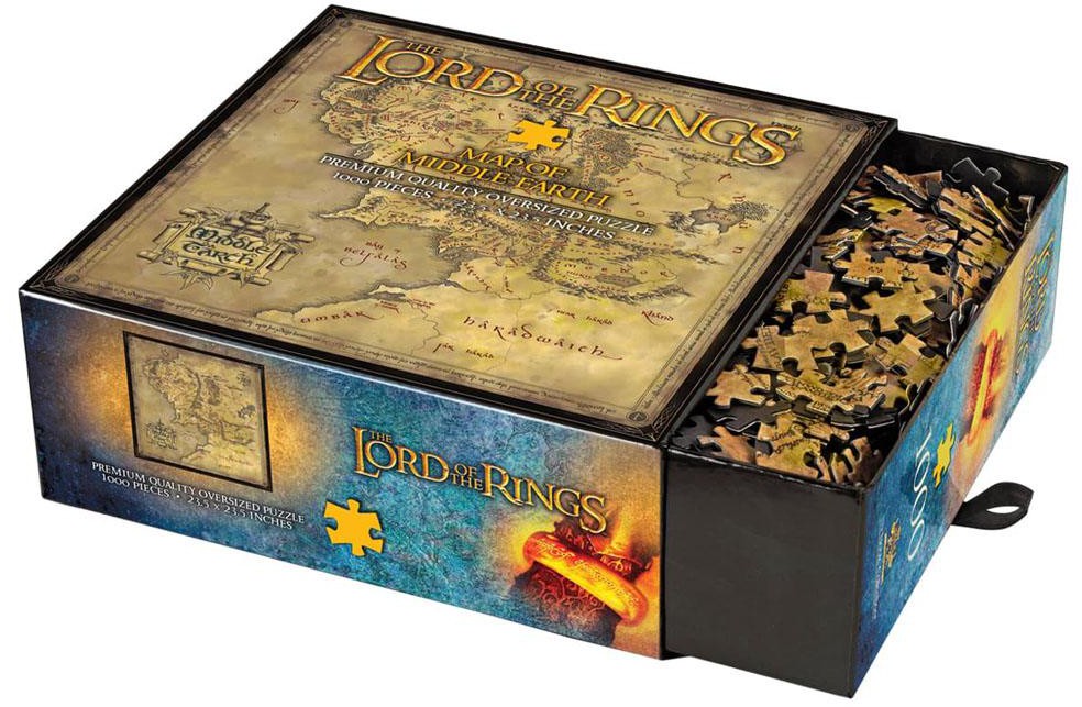 A highly detailed, beautifully rendered map of Middle-earth in the 3rd age, offered as a 1,000 piece jigsaw puzzle.
