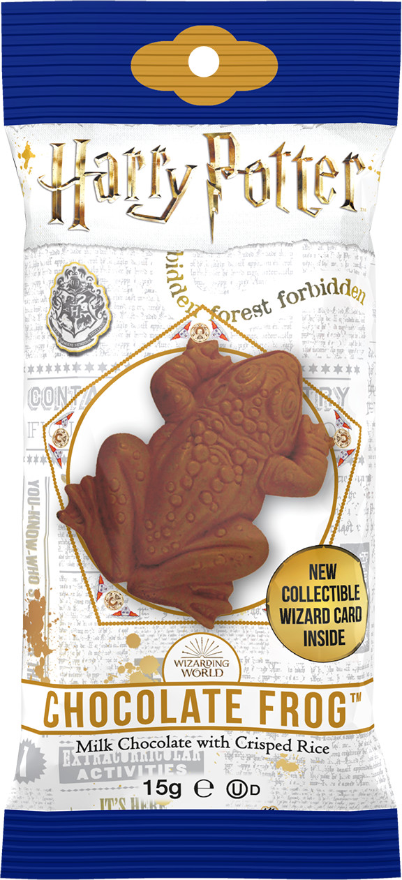 Harry Potter Chocolate Frog 15 g. Milk chocolate with crisped rice. Includes collectible wizard card.