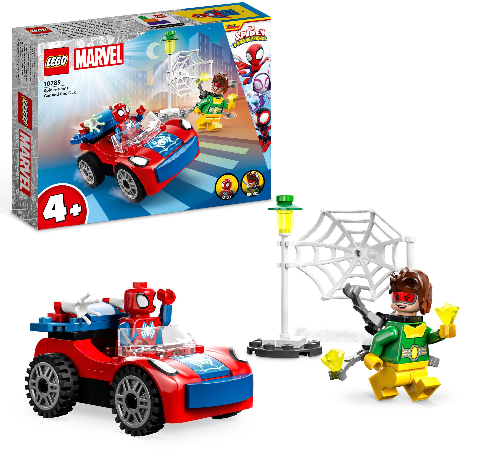 Lysande superhjälteaction – LEGO® Marvel Spider-Mans bil och Doc Ock (10789) innehåller superhjälteminifigurer och ett fordon utformat för barn från 4 år