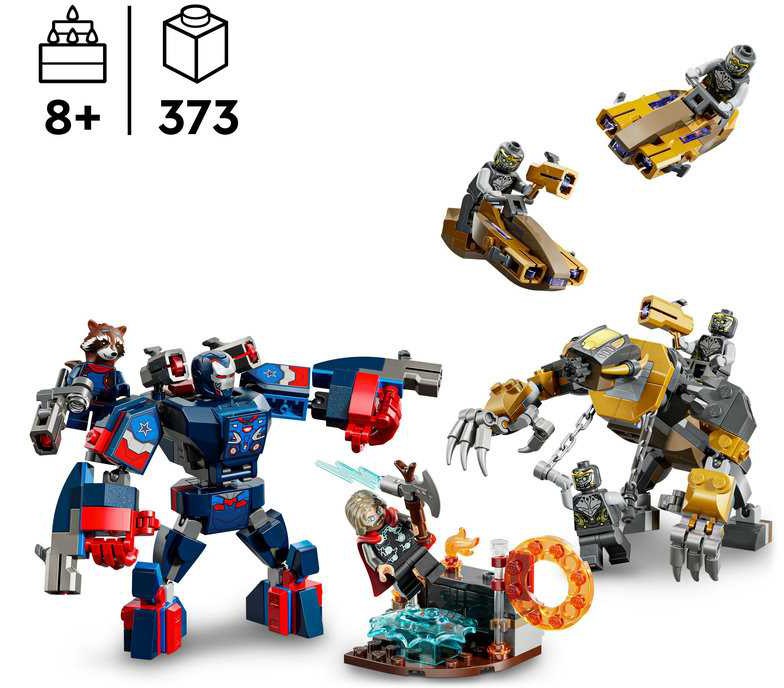 Chitauri-krigarna attackerar med sin enorma gorilla! Thor kastar sig in i striden med Stormbreaker, men odjuret fångar honom i sina krossande klor. Iron Patriot rusar fram i sin robotdräkt för att hjälpa sin vän, medan Rocket sitter högt uppe på robotens axel och siktar med sin stora knoppkanon. Samtidigt susar två Chitauri fram på sina raketcyklar och intensifierar kaoset på slagfältet.