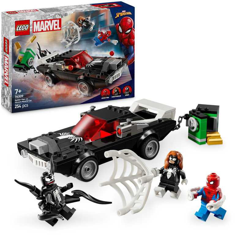 Den byggbara Venom-bilen innehåller 3 minifigurer: Spider-Man med nätkanon, Venom med fyra tentakler och Spider-Woman (Julia Carpenter) med ett flexibelt nät som är stort nog att fånga en skurk. Bilen har kanon på båda sidor, en lättillgänglig motor och öppningsbar cockpit. Venom kan sitta i bilen om hans två nedre tentakler tas bort – och de kan sedan användas för att venomifiera fordonet ännu mer.