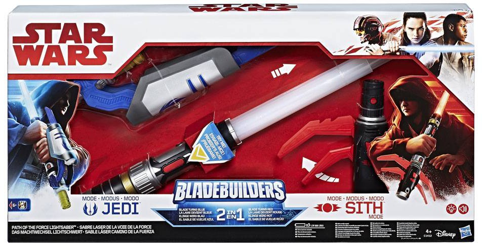 Kids can imagine battling on the side of the Jedi with included Jedi connector piece and blue lights, or wield the lightsaber on the side of the Sith with the Sith connector and red light effects! Easily switch connector pieces to fight with a blue Jedi blade or a red Sith blade. For more action, press button on Jedi or Sith connector piece to expand the hilt for customizable Bladebuilders fun! With the Path of the Force Lightsaber, kids can choose their own path and decide which side of the Force to fight on. Combine with other Lightsabers in the BladeBuilders system (each sold separately) and imagine the thrill of battle with a custom extendable lightsaber!
