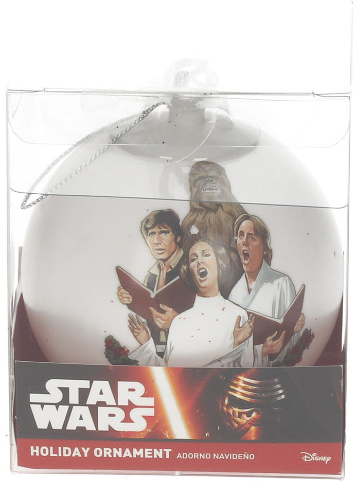 Star Wars julgranspynt med Han, Leia, Luke och Chewbacca sjungande i kör. Pynta granen med Star Wars julpynt i år!