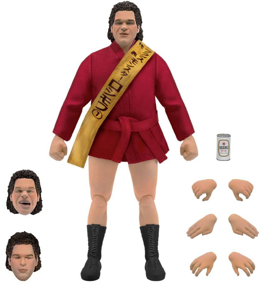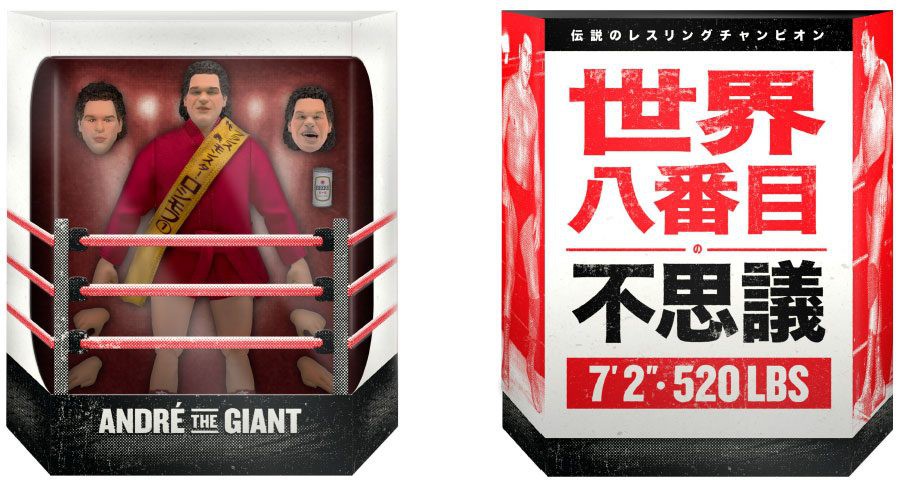 Super7 celebrates Andre The Giant's early success and illustrious career with his second ULTIMATES! action figure. Standing at 8 inches tall and packaged in a deluxe slip-case style box, the Monster Roussimoff comes packed with 3 swappable heads, multiple hands, a can of beer, and a soft goods satin robe and sash that he wore during the IWA World Series in 1971. And just like the giant he was in the ring. This highly articulated action figure is an inch taller than typical ULTIMATES! and is made-to-order and limited edition.